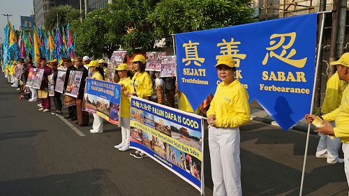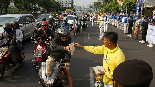 【明慧网二零一七年八月二十五日】二零一七年八月十八日至十九日,印度尼西亚法会前夕,法轮功学员在雅加达举办了系列活动,向广大民众传递法轮大法“真善忍”的美好,让更多的人知道,修炼法轮功的受益者遍布在超过一百多个国家和地区,而在中国大陆,中共对法轮功的残酷还在继续。