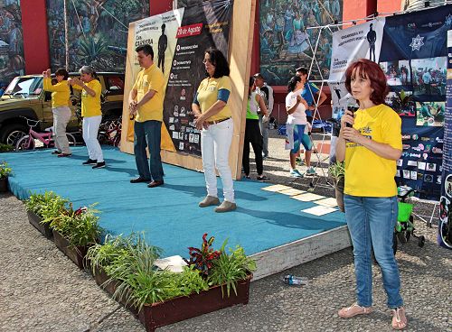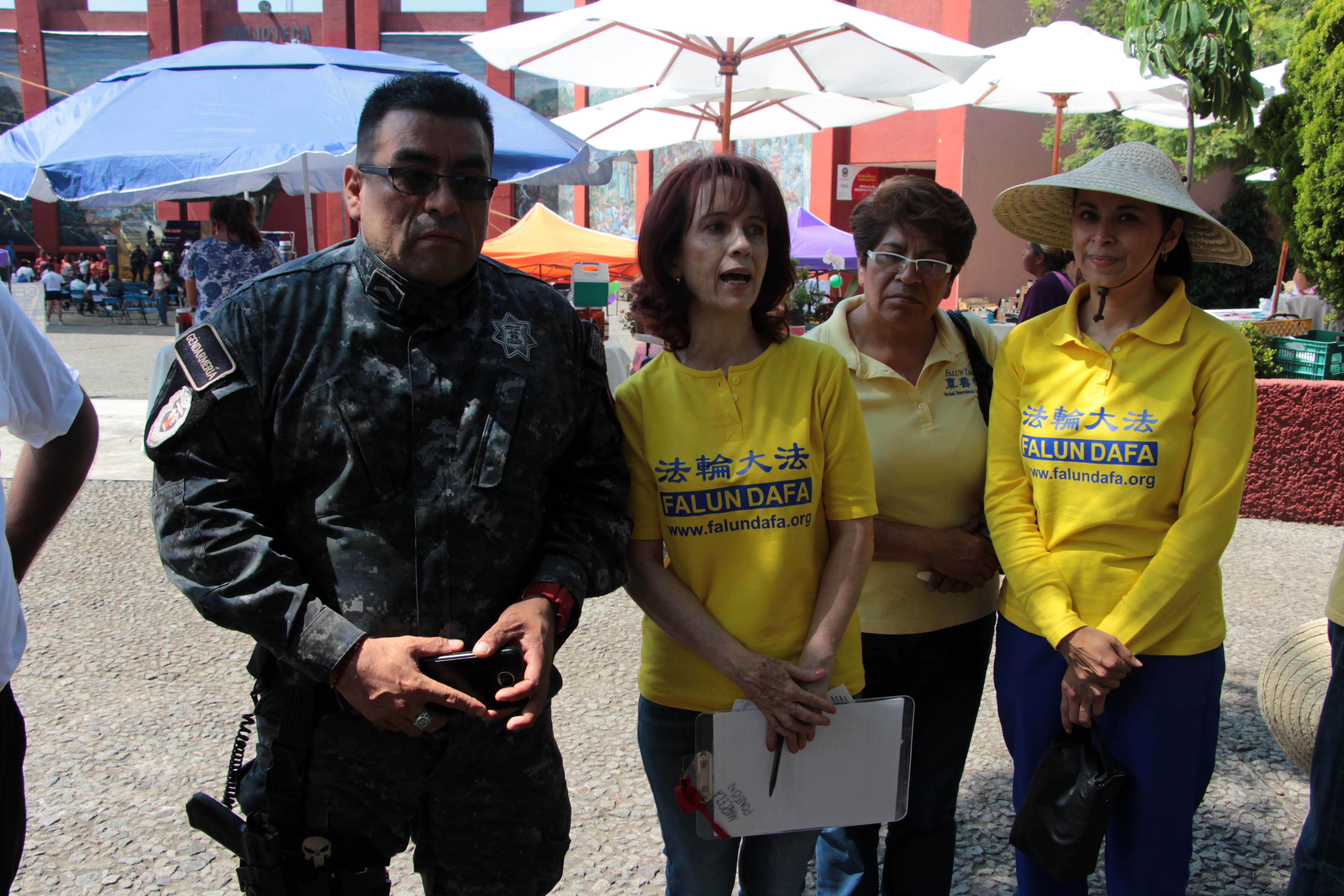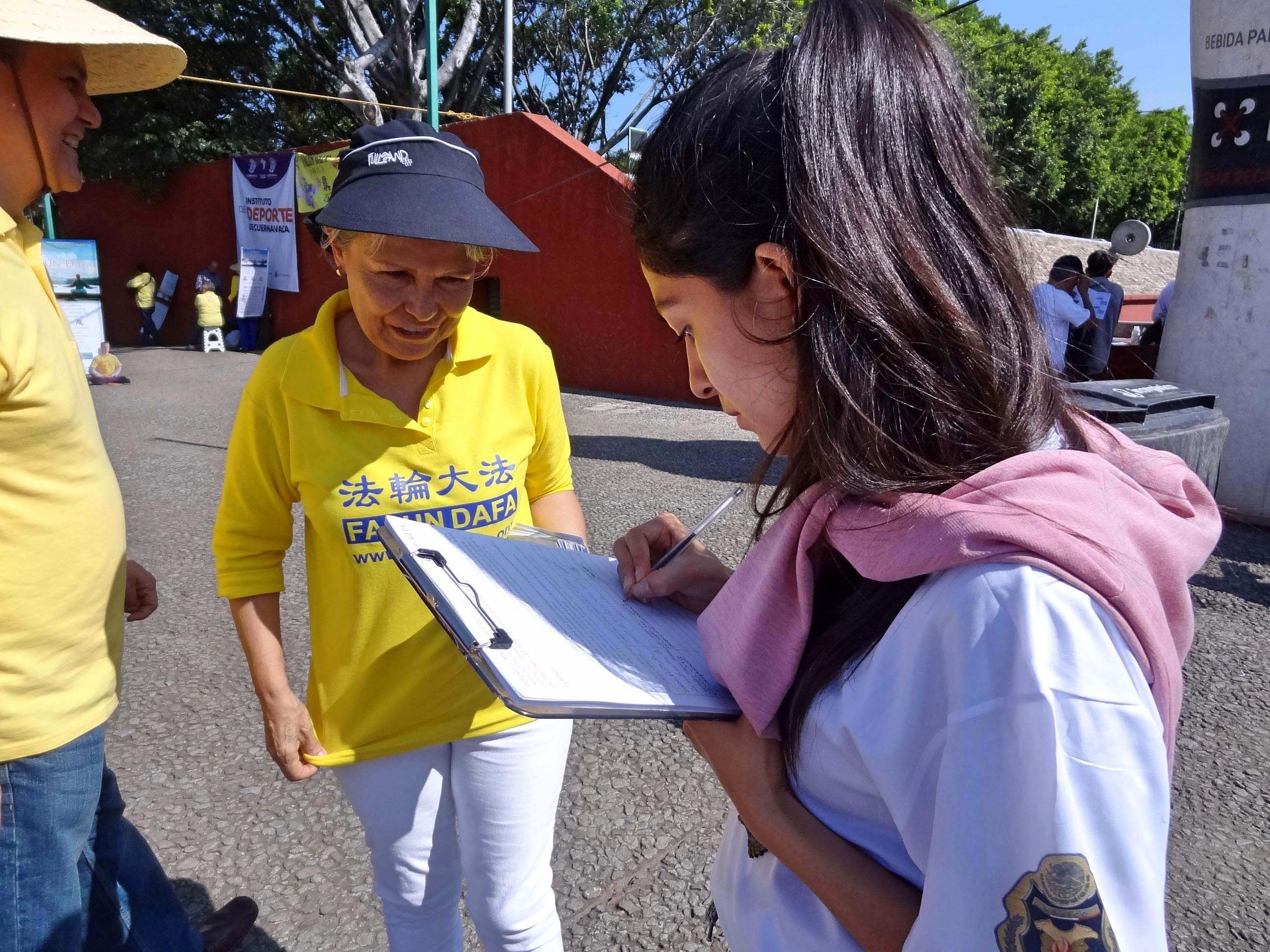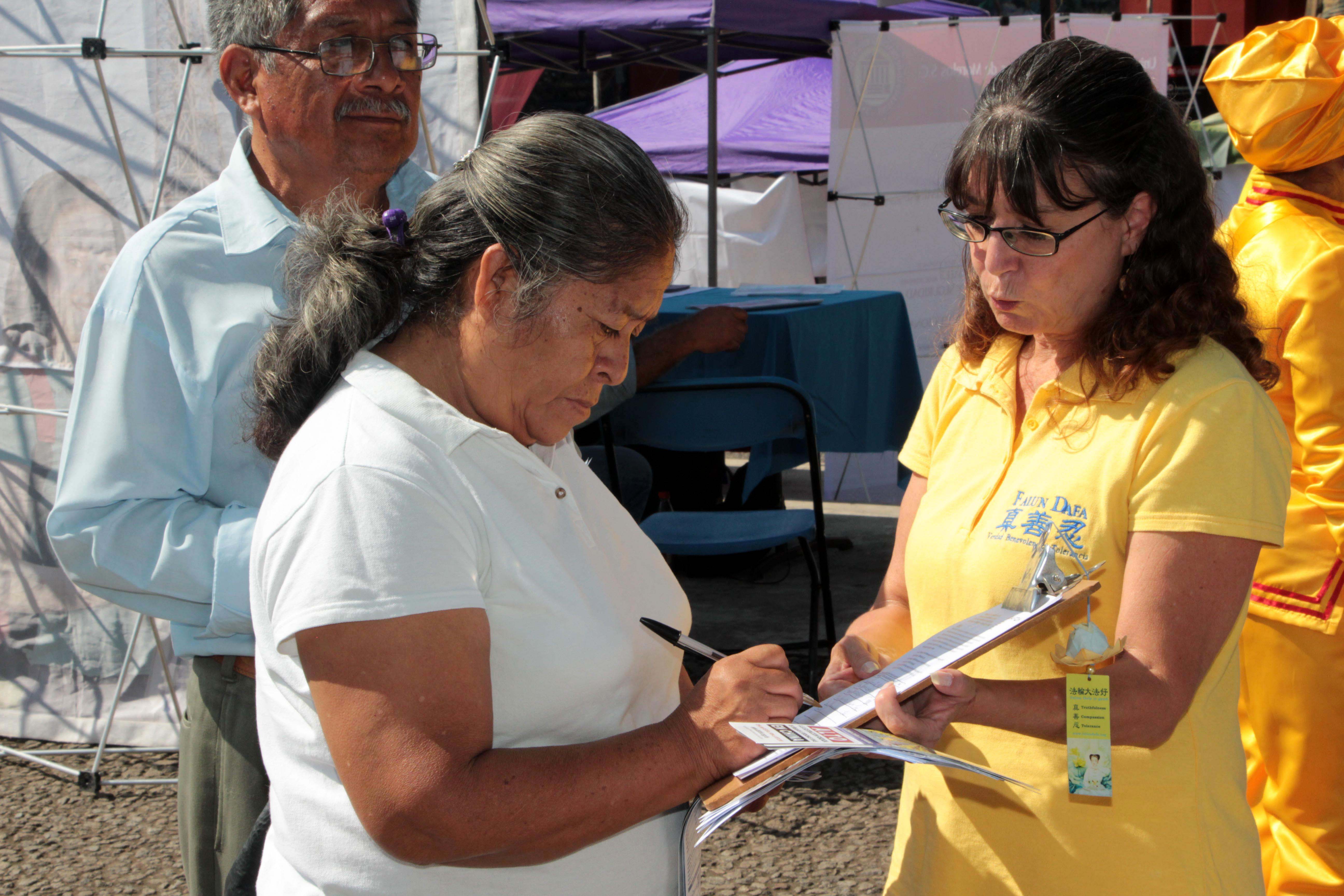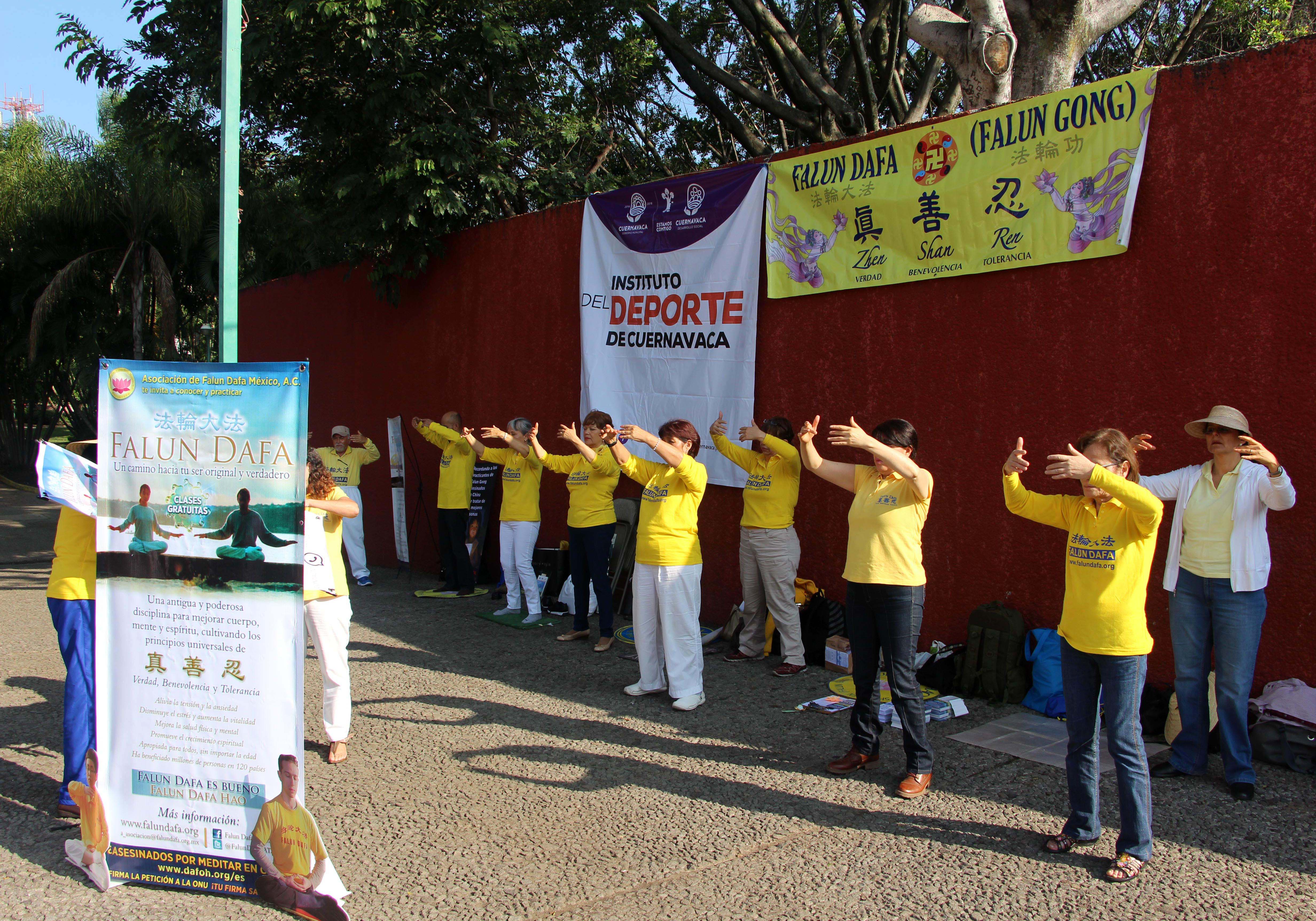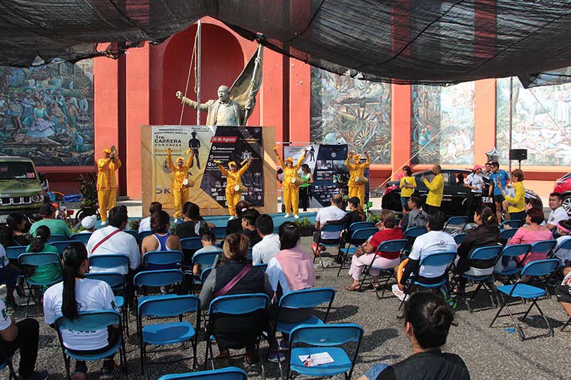 墨西哥城、莫雷洛斯州和普埃布拉州(Puebla)的法轮功学员参加了活动。他们在活动中示范了法轮功功法,表演了腰鼓舞,并向参与活动的民众派发法轮功真相传单和征签。