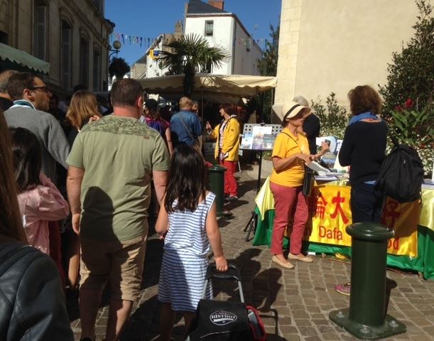 ![]() 在波尔尼克(Pornic)集市上介绍法轮功 |