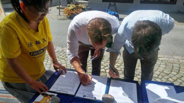 哈尔登城市民众淳朴而又善良。他们和学员交流、沟通,倾听学员的讲述。明白真相后的民众谴责中共的暴行,签名制止迫害,并为远道而来的学员加油。
