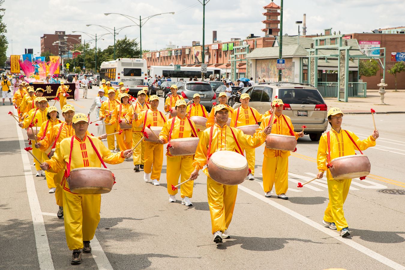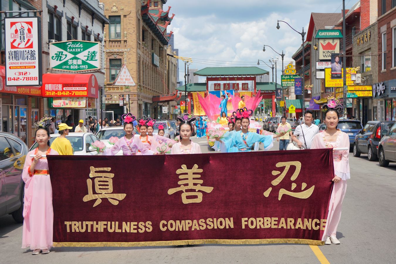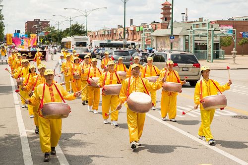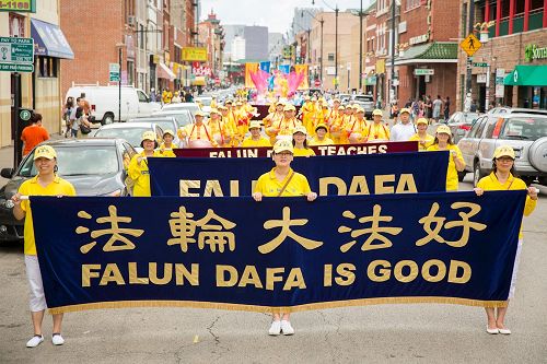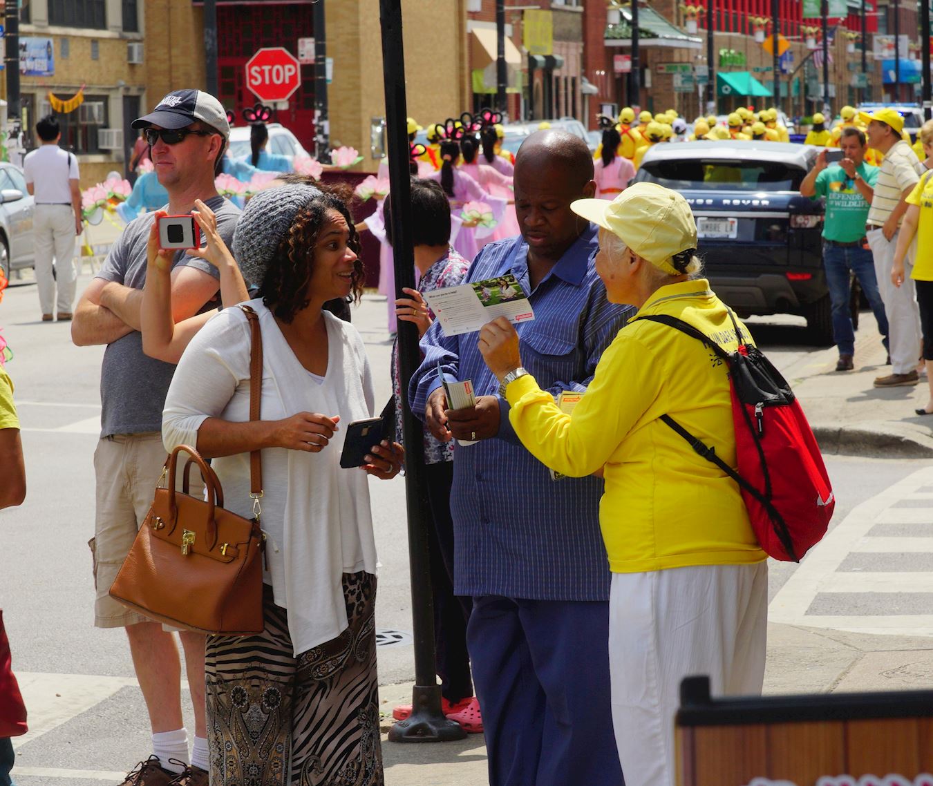 游行队伍沿芝加哥中国城主干道永活街一路向北,经过舍麦街和亚珠街再原路返回。沿路经过的地方,不少路人和缓行的汽车司机拿起手机拍照,有的向法轮功学员真诚地微笑致意,有的伸出大拇指表示赞许。