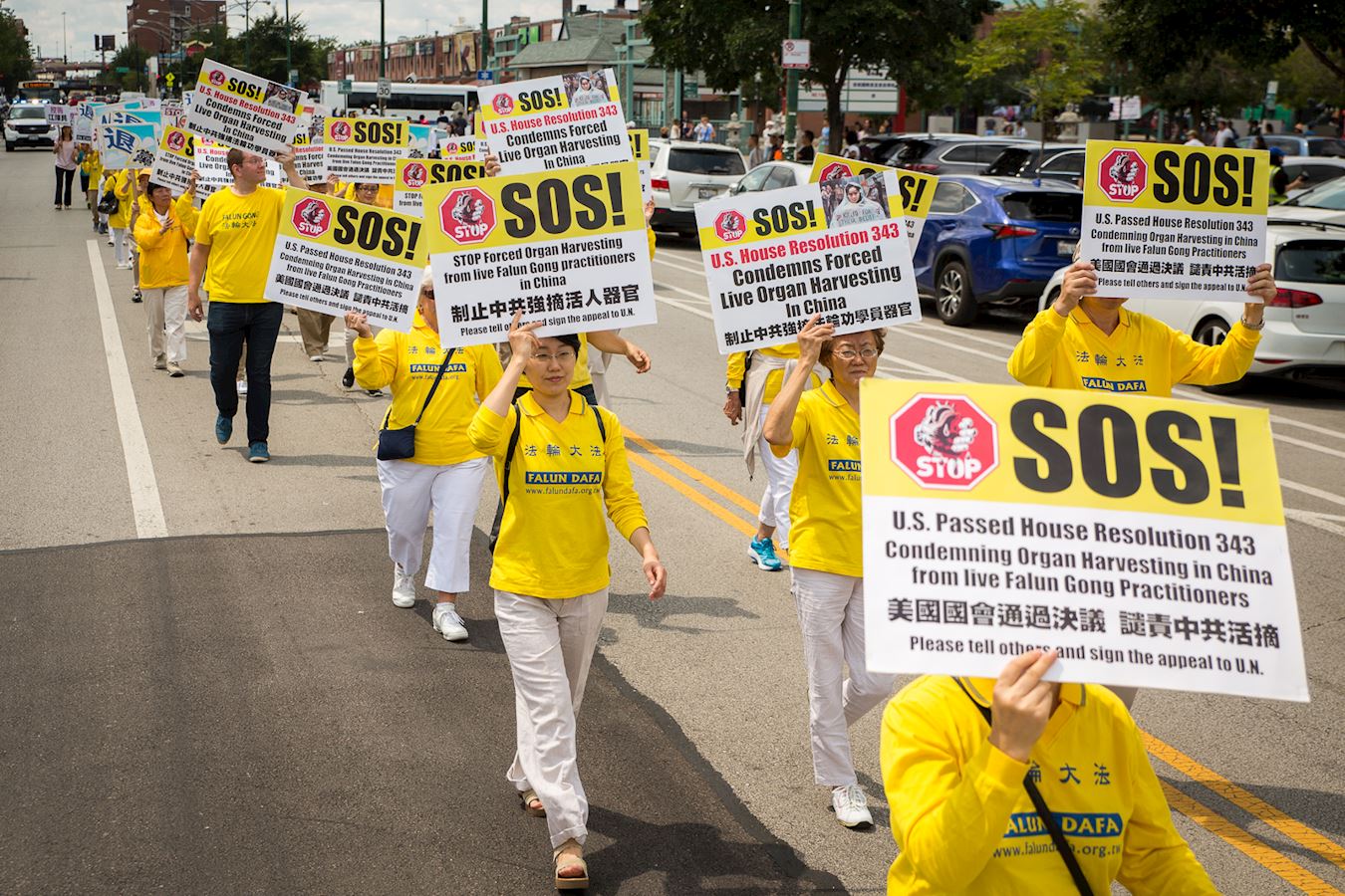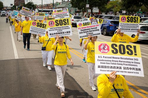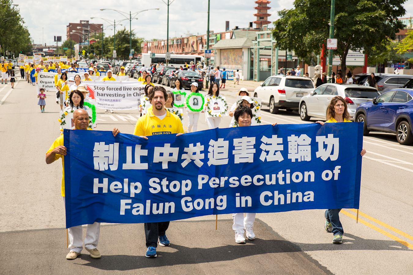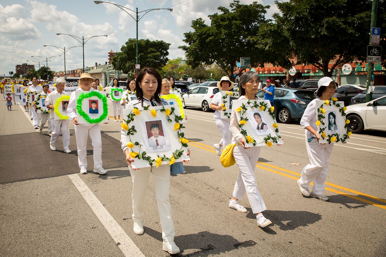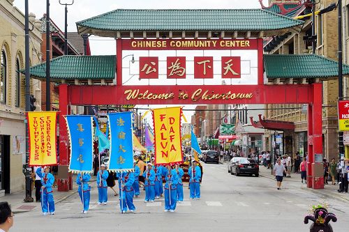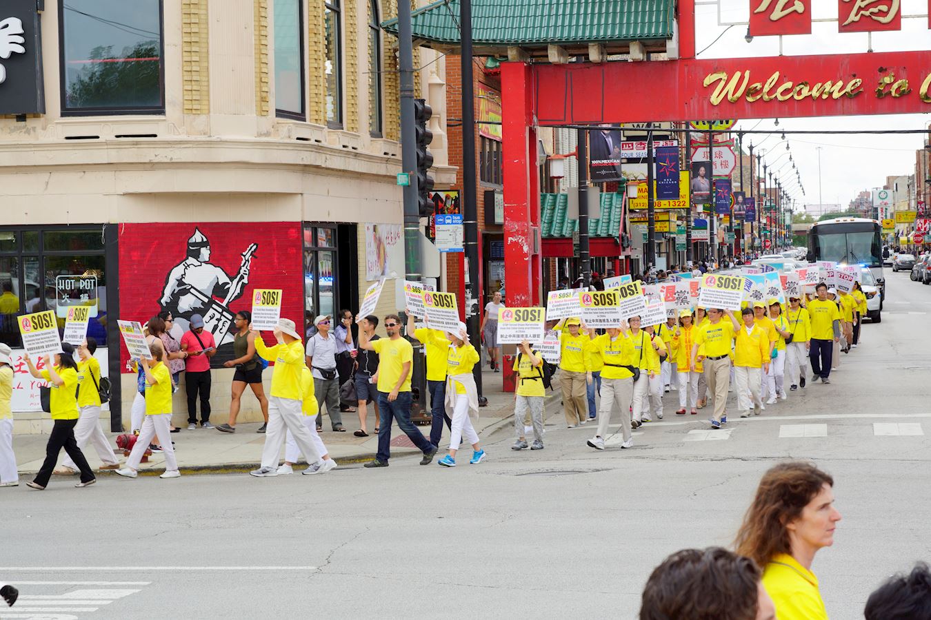游行队伍沿芝加哥中国城主干道永活街一路向北,经过舍麦街和亚珠街再原路返回。沿路经过的地方,不少路人和缓行的汽车司机拿起手机拍照,有的向法轮功学员真诚地微笑致意,有的伸出大拇指表示赞许。