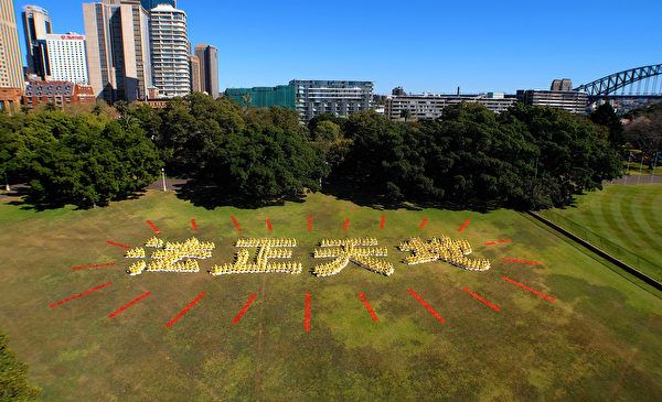![]() 图1:澳洲法轮功学员在悉尼皇家植物园大草坪上排字“法正天地”,展示修炼的坚定信念。 |