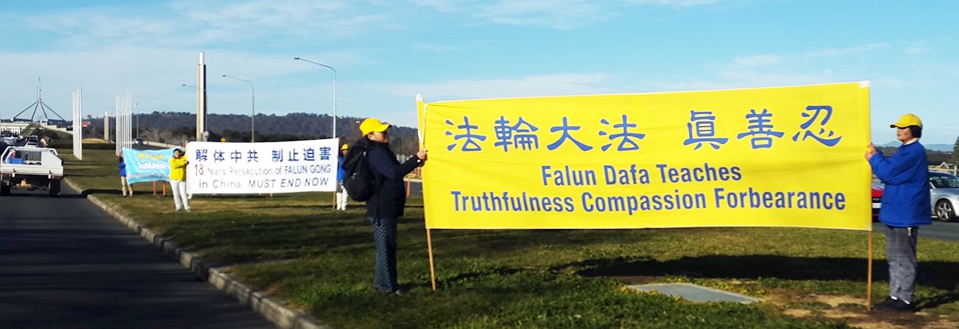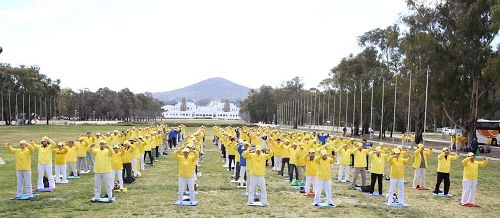 ![]() 图1~2:澳洲法轮功学员连续在堪培拉国会大厦前的草地,举行集会 |