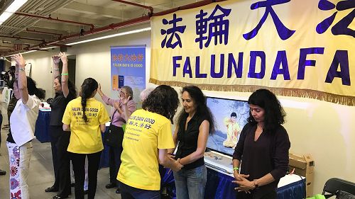 【明慧网二零一七年九月十五日】二零一七年九月九日和十日纽约曼哈顿举办素食博览会,人们来到这个展览寻求有益于身心健康的食品和生活方式。当地法轮功学员也参加了本次博览会,法轮功的展位吸引了寻找健康的纽约客们。