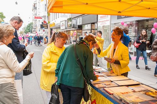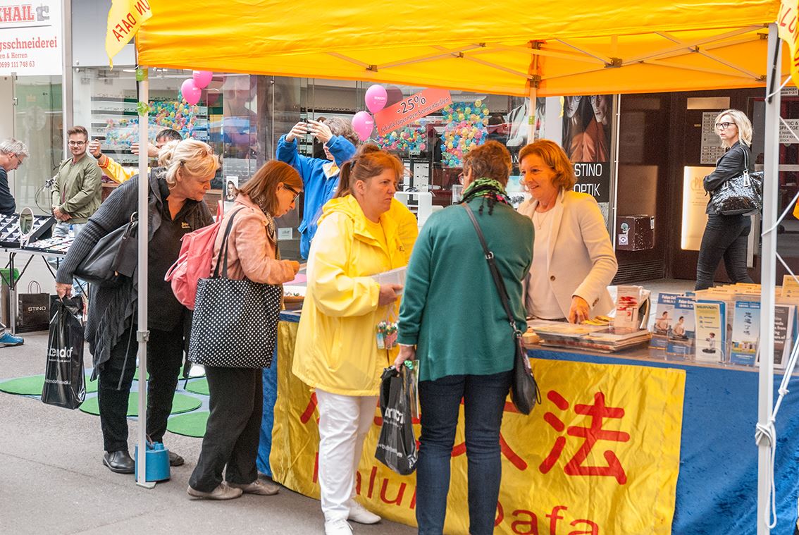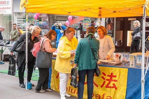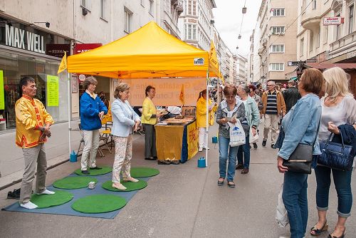 ![]() 图1~7:奥地利部份法轮功学员在首都维也纳的市中心,参加街头艺术节活动并传播法轮功真相 |