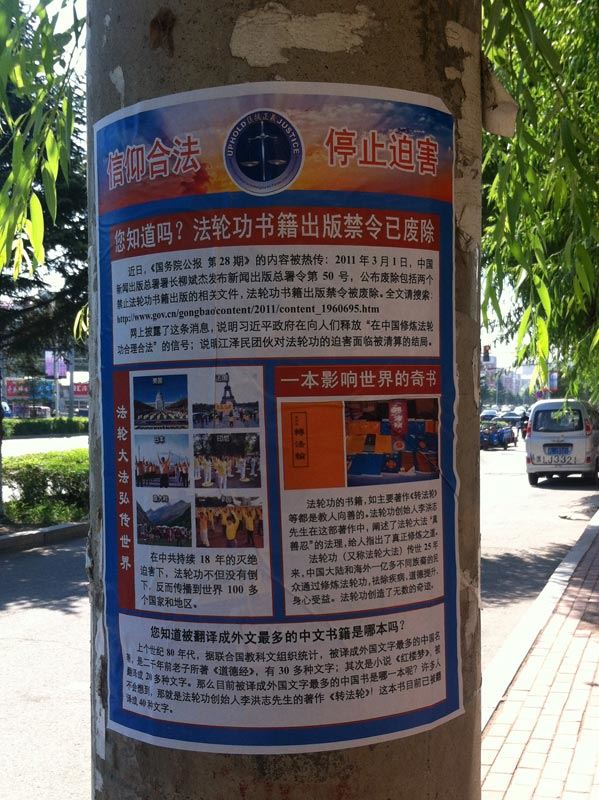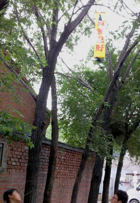 迫害至今已经持续了十八年,法轮功学员在自身遭受迫害的情况下,利用各种方式向民众讲述法轮大法好,并揭露中共对好人的迫害。在中国大陆,从南到北,从东至西,从乡村到一线城市,街头巷尾,公园景点,很多地方都能见到“法轮大法好”、“世界需要真善忍”、“真善忍好”、“起诉江泽民”等标语、粘贴、树挂、条幅等。看到标语的人们点头认同,更有观者在“起诉江泽民”的标语上写上“我同意”三个大字。而接到法轮功学员赠送的真相期刊的人们,更是欣喜阅读。