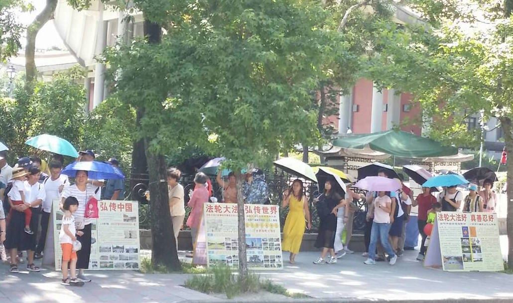有两位来自吉林长春的游客边抽着烟,主动靠近并询问:“法轮功全世界这么多国家的人都在炼啊?”随着交谈的过程,他们主动提到:“我们是最了解法轮功的,知道知道,现在长春大概每个人都了解,三:退.啊,我们那地方应该都三:退.了吧!”