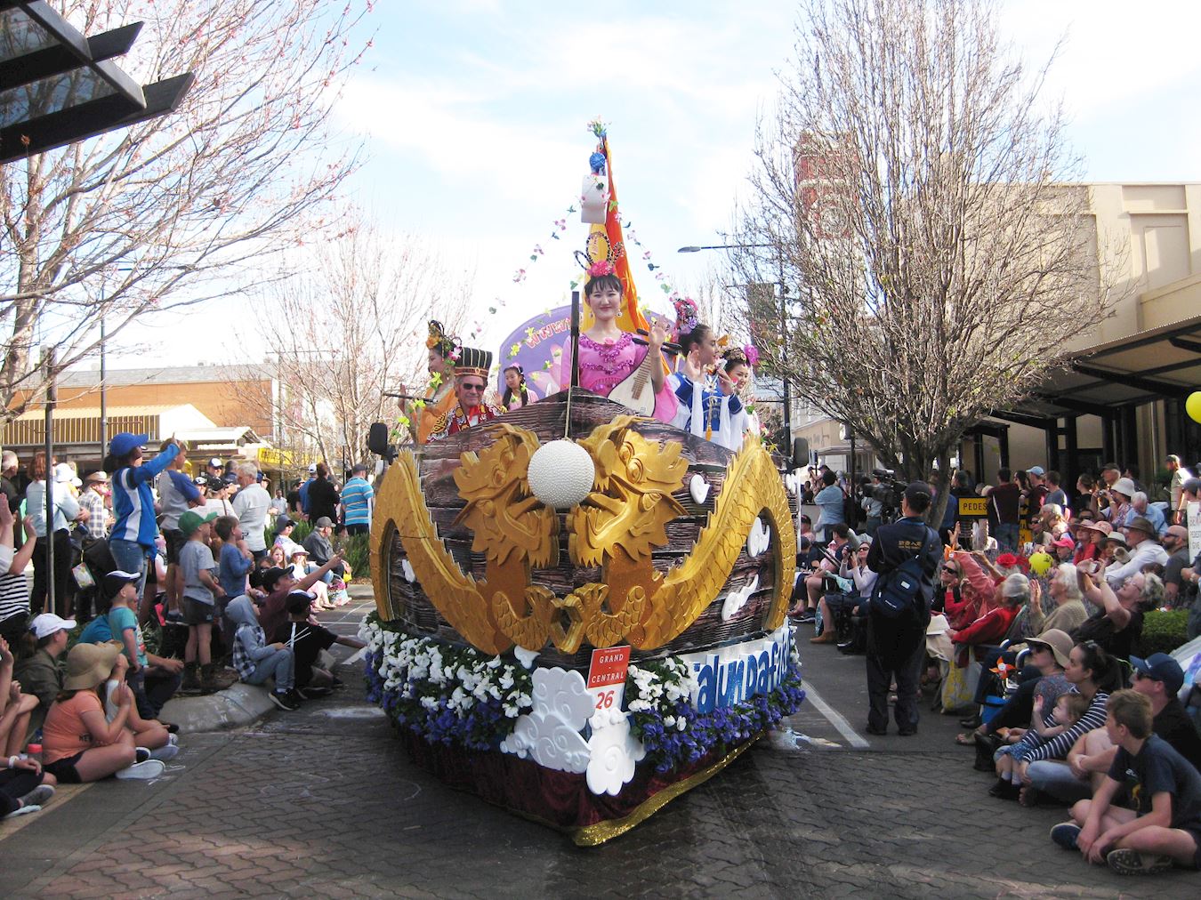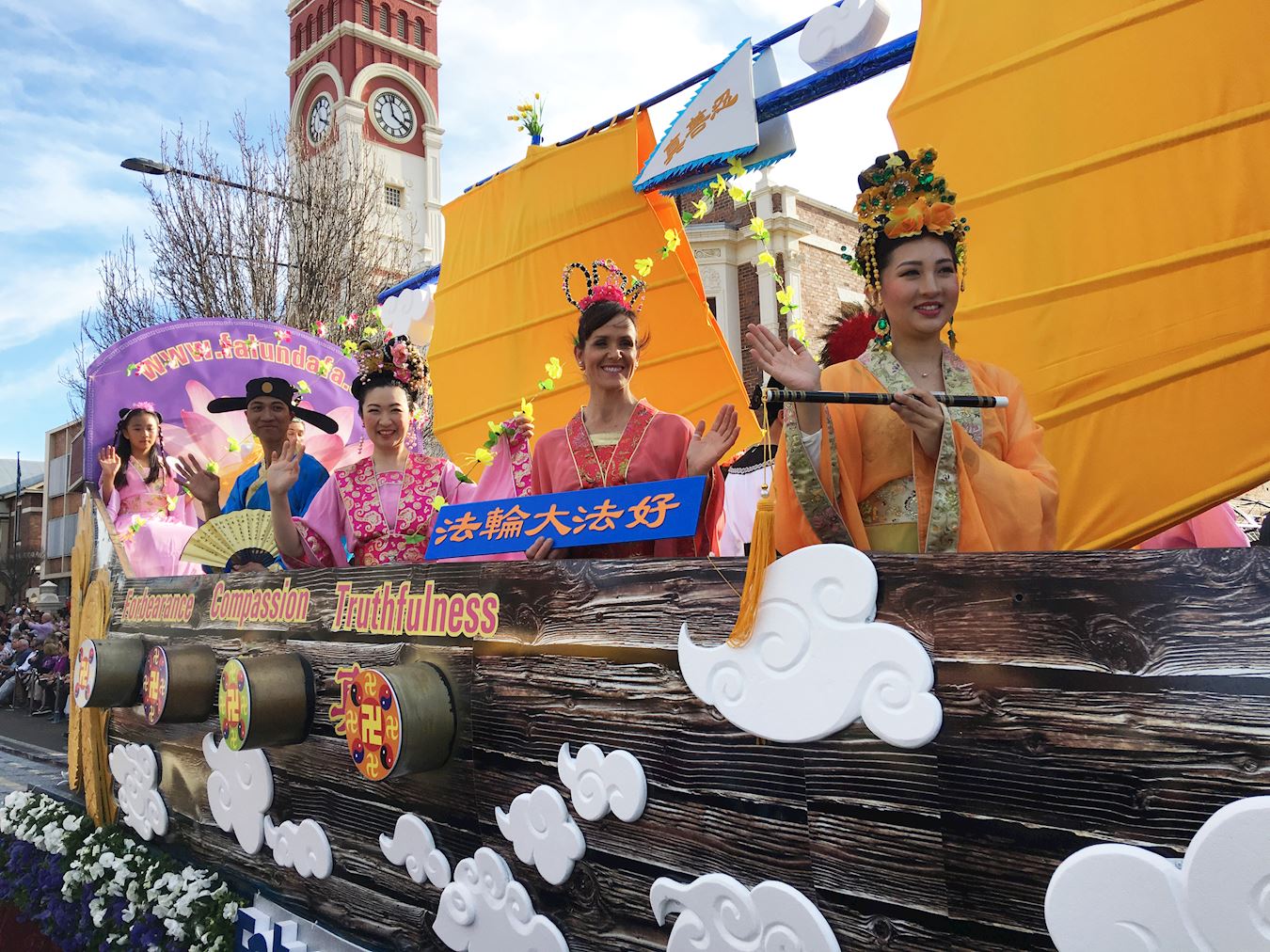 自一九九九年开始,法轮功学员已经是第十八年应邀参加花节大游行了。对此,主办方深表感谢,特别是得知天国乐团从悉尼和墨尔本不远千里来参加游行活动,更是感激不已。游行结束后,市政府负责花节游行的工作人员安娜特意过来向学员道谢,感谢他们多年来对此活动的热情支持和付出。她最后说:“你们的龙舟太美了,可以看出你们花了很多心血和时间。谢谢你们!期盼你们明年再来!”