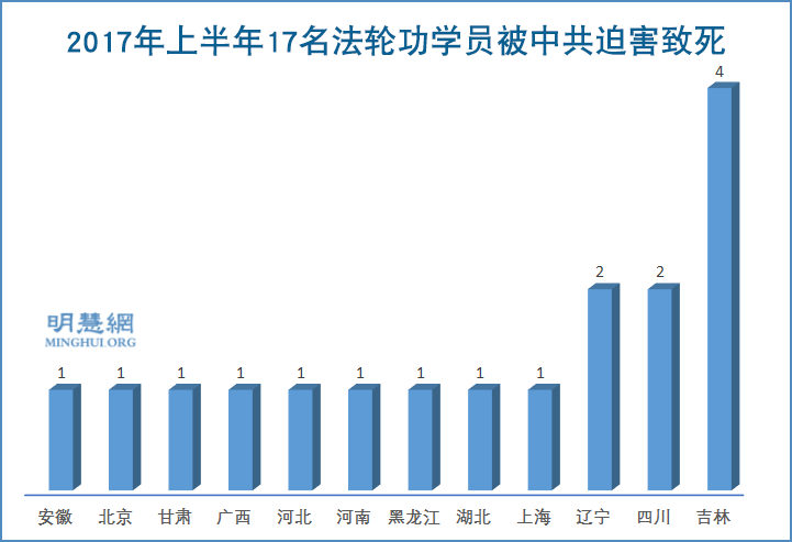 ![]() 图1:2017年上半年17名法轮功学员被中共迫害致死 |