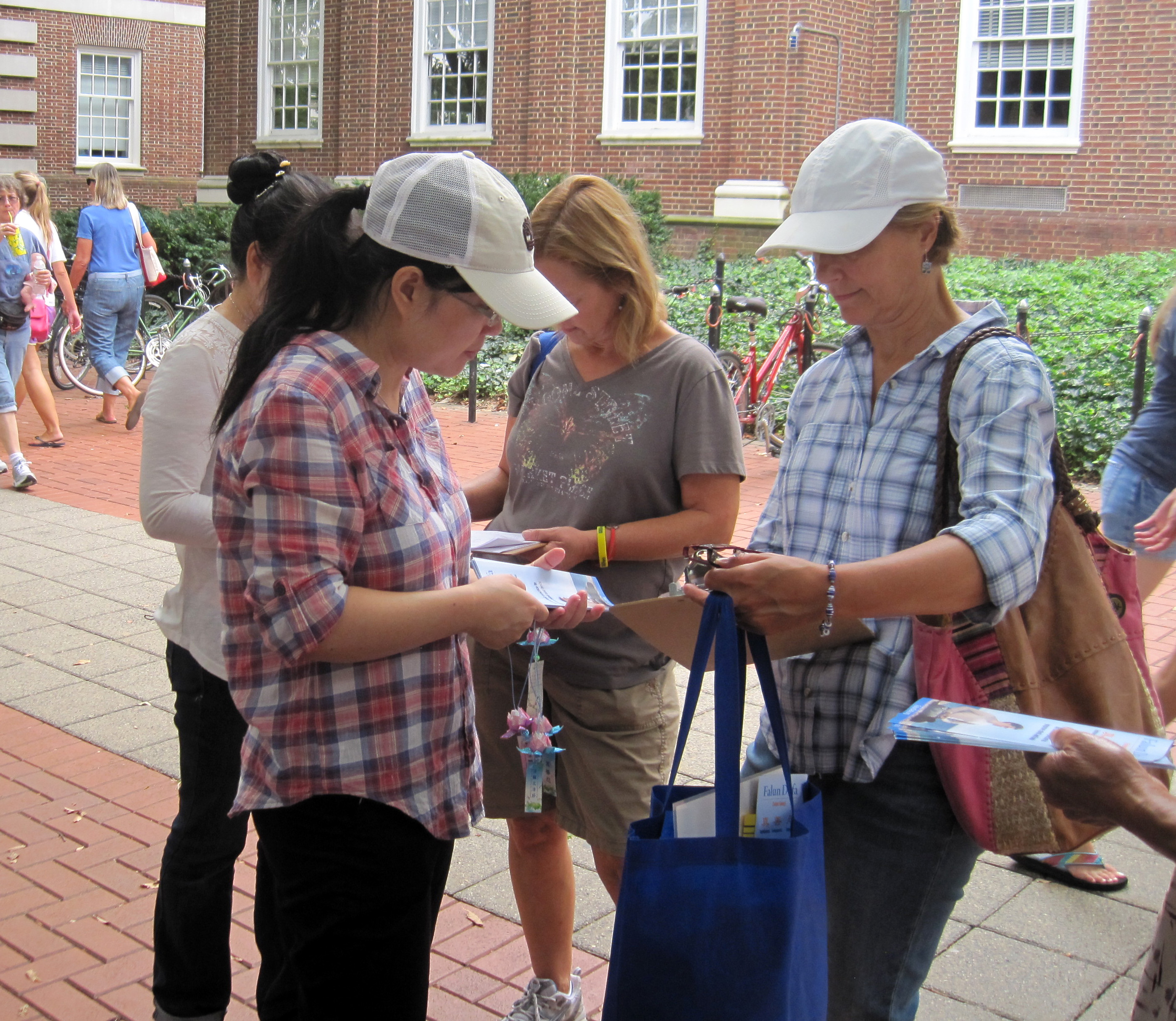 在介绍功法的同时,法轮功学员们还向民众发放真相资料、讲真相,并征集签名以呼吁阻止还在中国发生的中共活体摘取、盗卖法轮功学员器官的罪行。许多民众听了真相后,纷纷签名支持法轮功学员的和平反迫害,希望能尽快制止这令人发指的罪行。