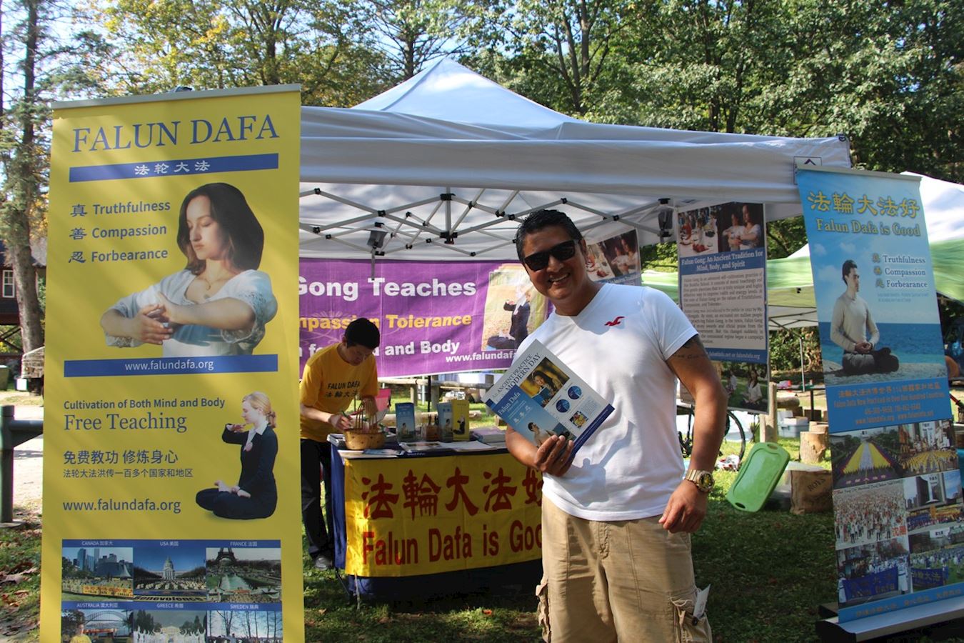 Alejandro说:“我今天详细问了很多问题,了解了不少。其实我在多伦多市中心也看过好几次法轮功学员举办的活动。接到传单后,我曾从不同的层面和角度都去了解了一些情况。我觉得这是一个非常好的功法,我刚在‘Falun Dafa English Free Teaching’的免费教功表上登记了,我今天决定修炼法轮功,我会到家附近的炼功点去学。我非常赞同真善忍的理念,这些是人类想要保存的东西。如果人们跟从这个理念,对每个人来说都会是一个更好的世界。”