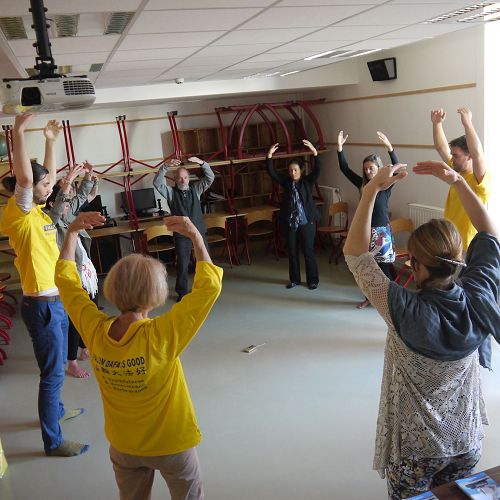 若赛特:“炼功的动作都是很温和、很缓慢的,没有一丝对身体的不适。感到真正的放松,我真的很赞赏。”