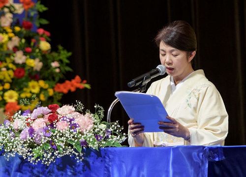 居住在熊本的小川女士讲述了她在去年熊本大地震后,参与灾区救援活动的同时弘法讲真相的活动经历。整整七个月,她白天参加救援活动,晚上参加日本内阁府举办的赈灾复兴为主题的不同的研讨会。