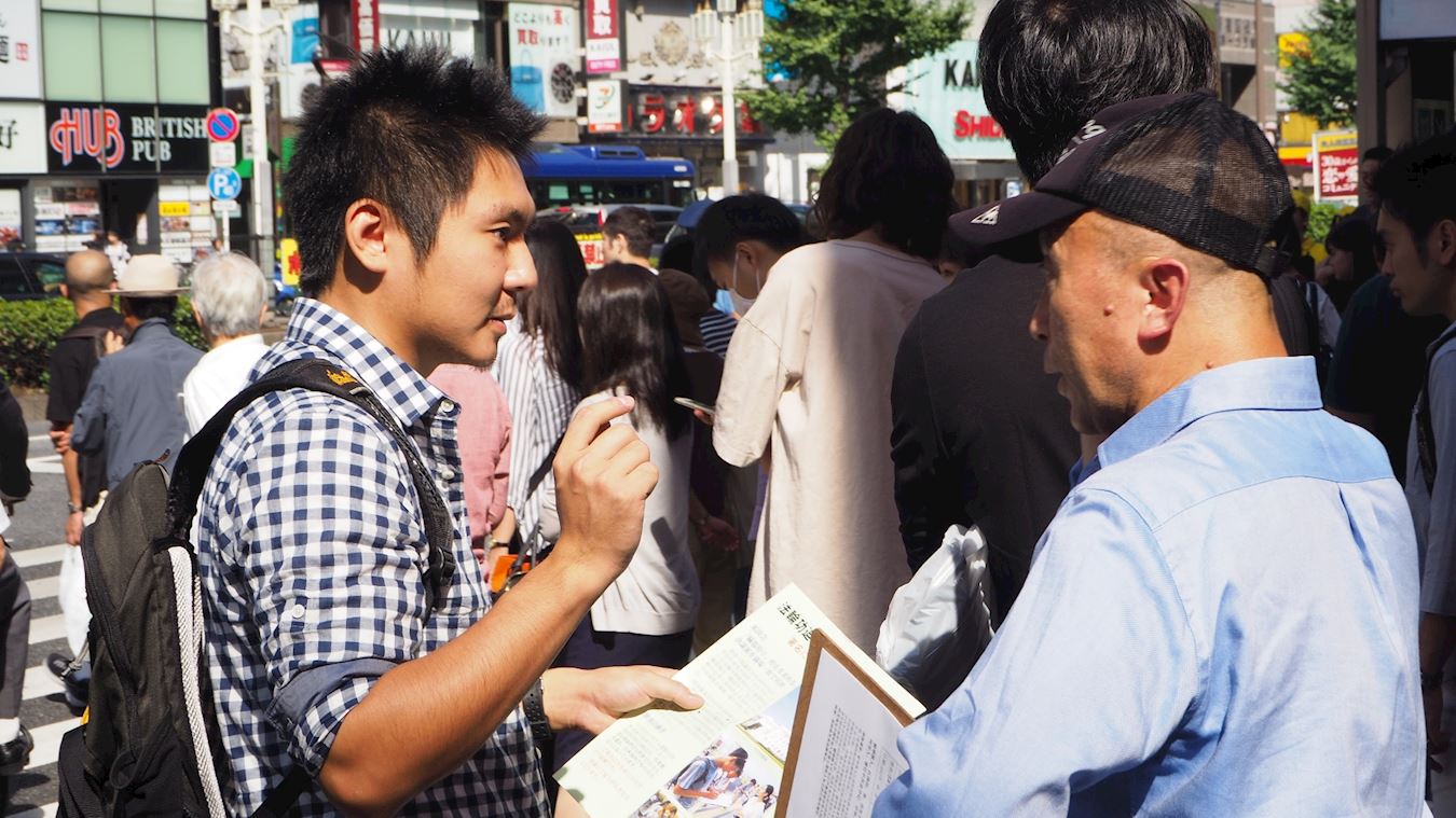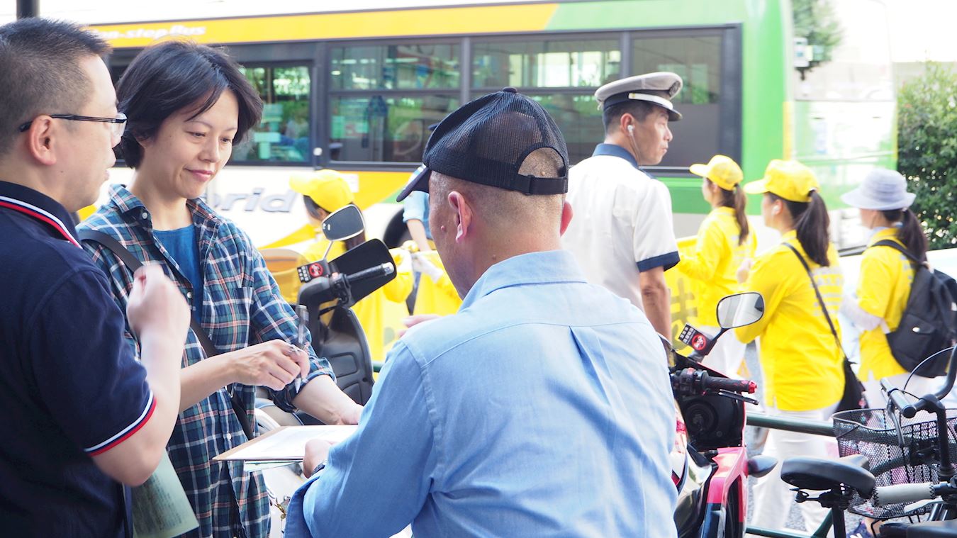 一对日本人夫妇在签名后表示要捐款给法轮功学员,学员表示感谢后礼貌的拒绝了。