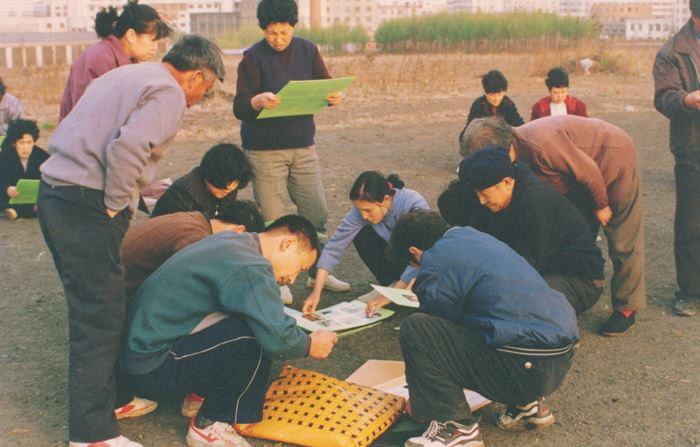 ![]() 图7:利用周日举行集体炼功(一九九八年拍摄) |