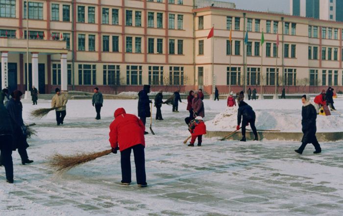 ![]() 图8:每逢下雪时,晨炼的学员都要把整个市政广场的雪打扫干净(一九九七年拍摄) |