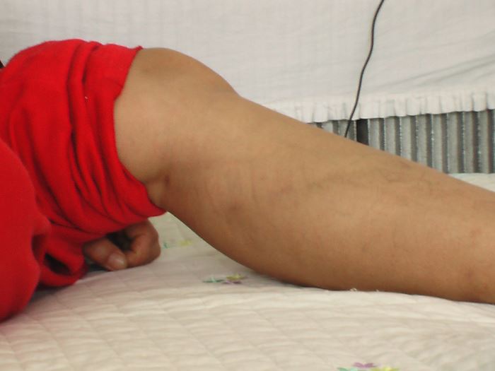 ![]() 图13:几天后还可见腿上有一道痕(二零零六年拍摄) |