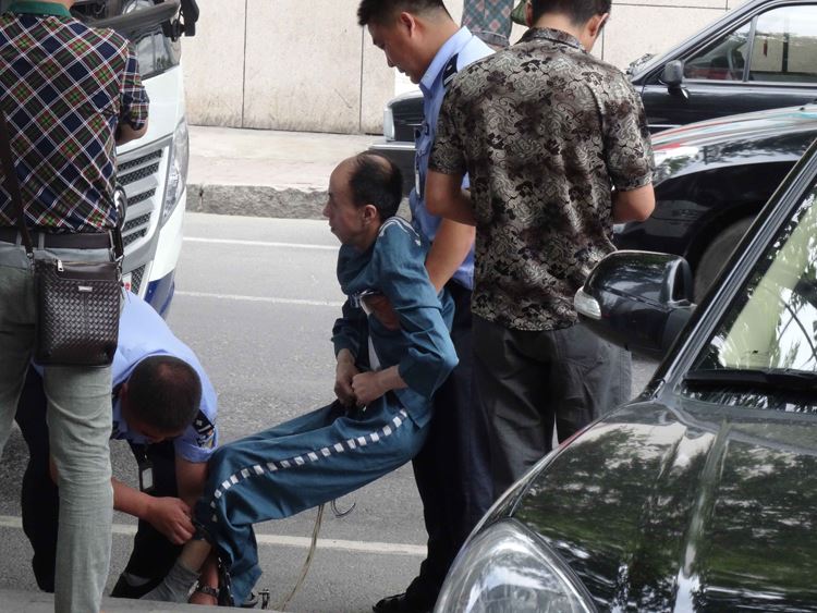 没能去北京的学员,第二天,也就是七月二十二日,自发到市政府广场请愿,八、九点钟时已集结了一千多人,这时防暴警察跑步进入广场,将请愿人员团团包围,随后赶来的法轮功学员越来越多,他们想进入广场中,奇怪的是警察围成人墙,不让后来的人进去,那一刻有一幕很精彩,一个孕妇学员冲了进去,她往示威集聚的人群跑,有一个武警在后面追,此时全场的视线都集中在这俩人身上,那个警察愣没追上,全场一片欢呼声。