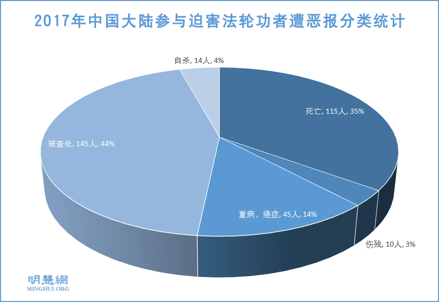 ![]() 图1:2017年中国大陆迫害法轮功者遭恶报分类统计 |