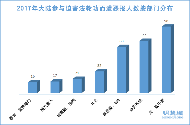 ![]() 图3:二零一七年大陆参与迫害法轮功而遭恶报人数按部门分布 |