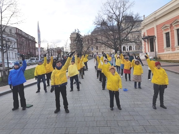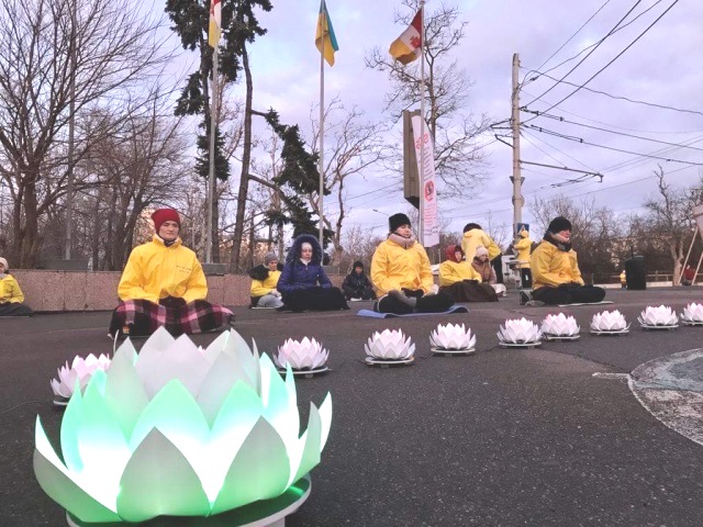 十二月二十三日,学员们在位于市中心的敖德萨歌剧院旁边举办了讲真相活动,向人们派发真相资料,介绍功法,并征集签名谴责中共邪*党-对中国大陆法轮功学员的迫害。