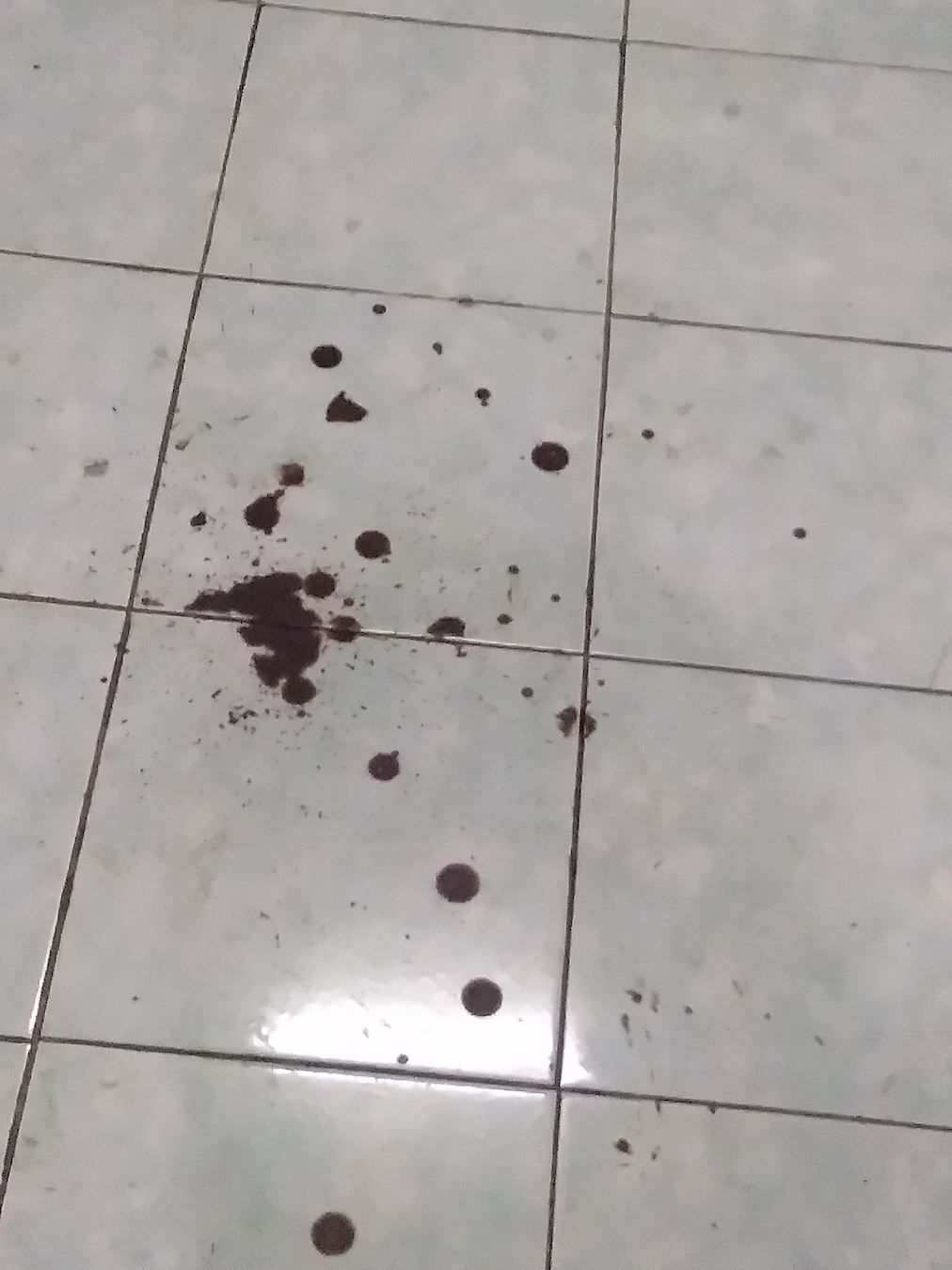 二零一七年九月十三日晚二十时许,长春市民康路派出所警察(可能还有南关区国保警察)六、七人,突然闯入南关区西四道街宏达小区三栋五单元709室(法轮功学员刘庆杰的租房),将刚刚进屋的刘庆杰、李国军绑架,后得知还有孙姓法轮功学员。期间警察将法轮功学员李国军带到厨房,上去就是一拳,把李国军右眼、脸部打的鲜血直流,很快血就浸透了裤子,并流在了地上(见照片)。