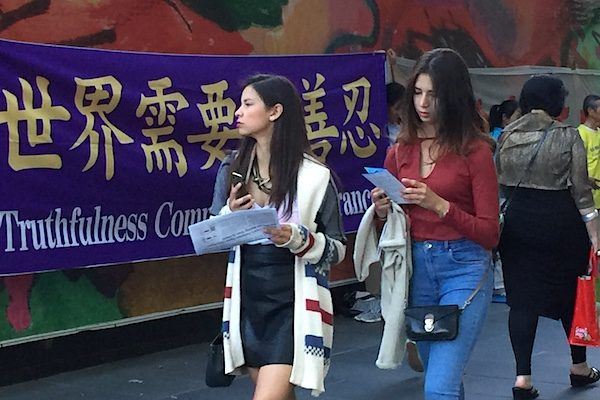 来自新西兰的游客桑蒂(Sandy Maree Lindquist)和女儿莎奈儿(Shanell Maree Lindquist)对法轮功在中国受到的迫害感到无比震惊。