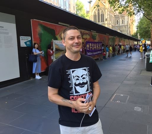 软件工程师达拉斯·沃丁(Dallas Walding)以前就了解中共活摘法轮功学员器官的事情。今天见到法轮功学员在征签,主动走上前去打招呼并签名,希望制止中共对法轮功的迫害,“签名能有效制止这场犯罪,越多人知道活摘器官的真相,就越能敦促(澳洲)政府采取行动”。