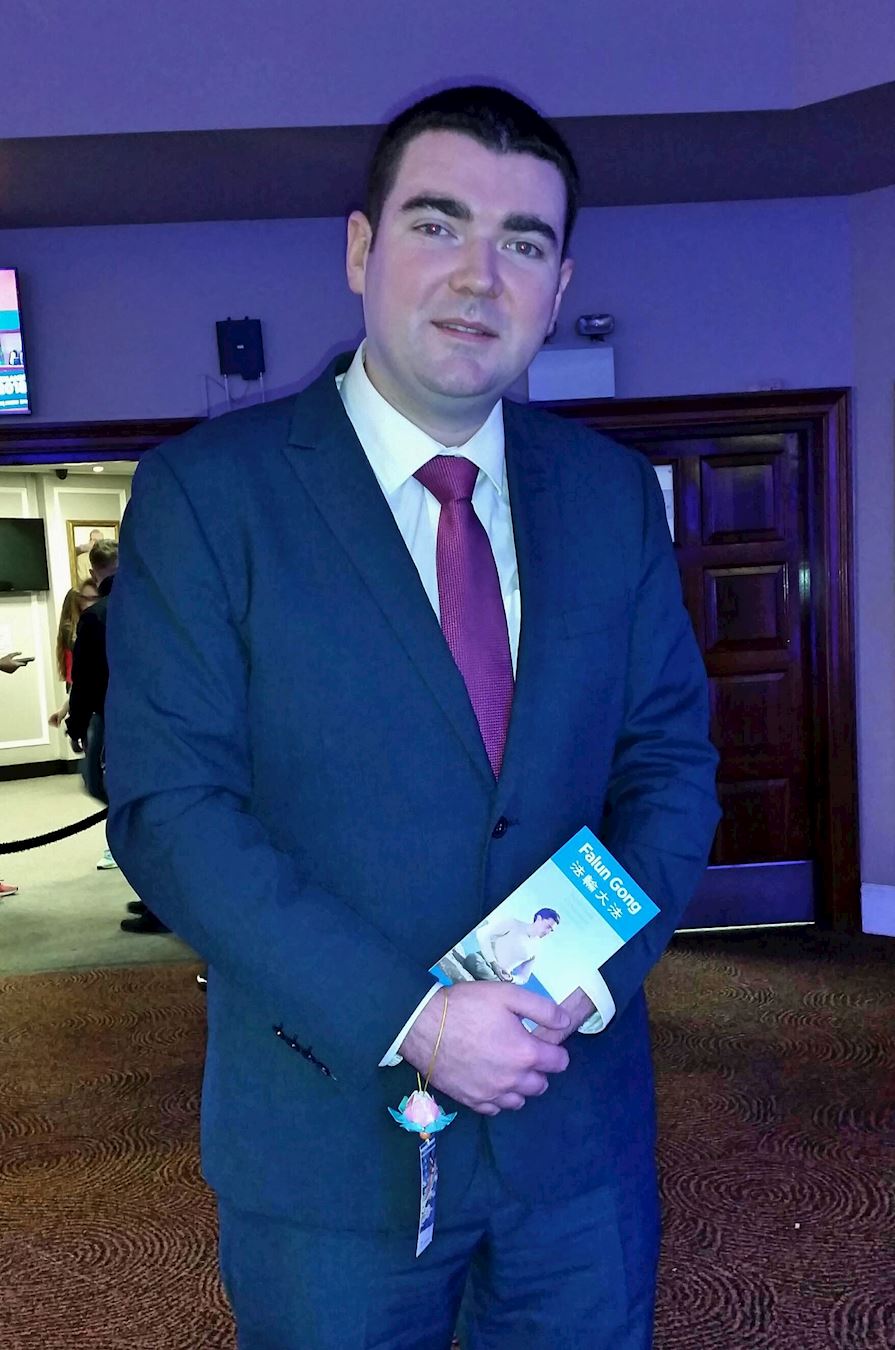 当天,爱尔兰体育部副部长布伦丹·格里芬(Brendan Griffin)受邀为健康展开幕式发言。发言结束后,格里芬和法轮功学员进行了交谈,法轮功学员告诉他:法轮功也叫法轮大法,是修炼真、善、忍的佛家大法。这时格里芬指着传单上英文,用英文重复了一遍传单首页上“真、善、忍”,临走前格里芬高兴地收下了法轮功真相传单和莲花饰品。