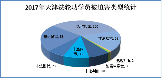 二零一七年,天津市武清、大港、南开三个区迫害法轮功学员案例最多,合计140人次,占比全市迫害总数的38%,而武清区连续三年成为迫害法轮功学员最为严重的地区。