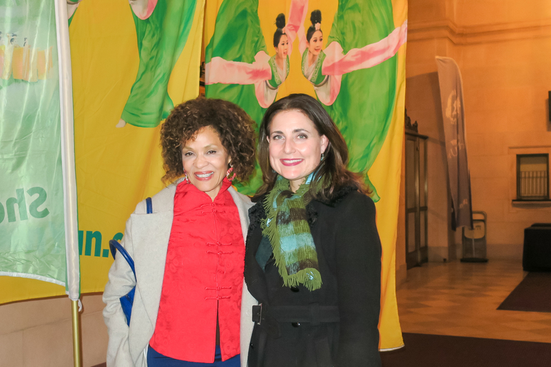 ![]() 图7:CBS节目主持人兼制作人黛安·瓦格纳(Diane Wagner)女士(右)和Brenda Wade博士都非常喜爱神韵,特别被神韵的精神内涵所打动。 |