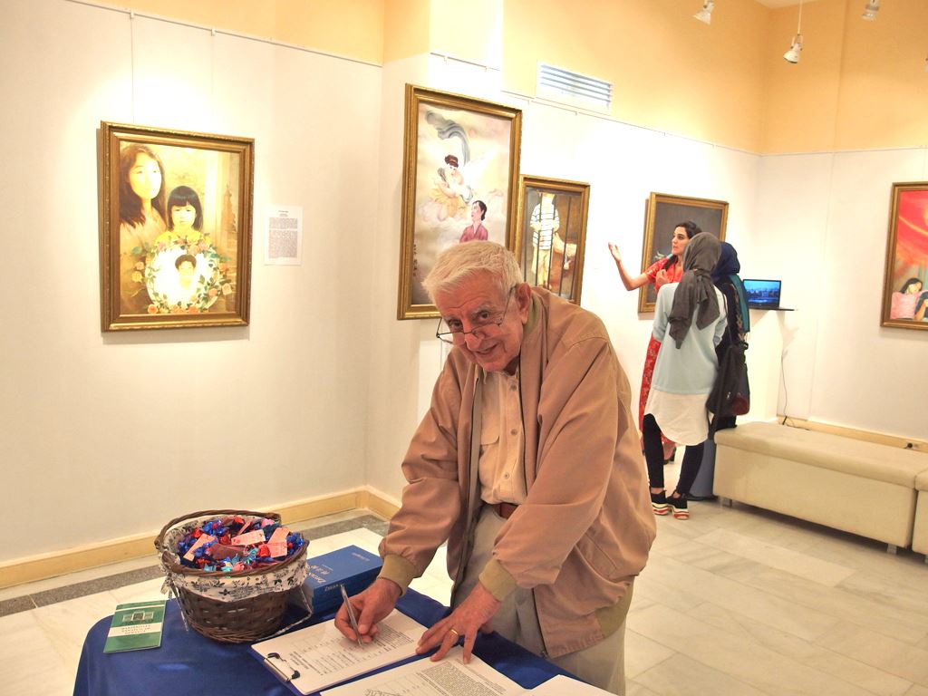 Üstün Asutay是伊斯坦布尔艺术家协会的创始人之一。他经常来美展看望法轮功学员。他感谢法轮功学员的付出,并祝美展成功。他还谴责中共对法轮功学员的迫害,并在要求停止迫害的征签簿上签字。