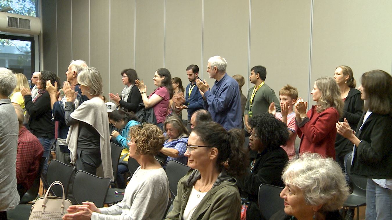 ![]() 图1~2:二零一八年十月二十一日下午,《求救信》在帕洛奥图米切尔社区中心举行的“2018联合国协会电影节上放映”放映,现场观众感动落泪,表示该影片令人震撼。 |