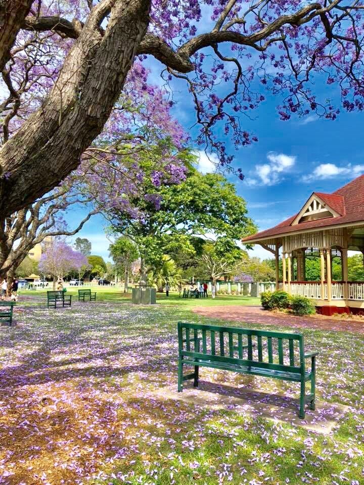 【明慧网二零一八年十月二十四日】(明慧网澳洲昆士兰记者站报道)十月的南半球春意正浓,也是澳洲蓝花楹盛开的季节。在昆士兰市区的新农场公园(New Farm Park),随处可见高大的蓝花楹树,紫色的花穗挂满枝头,在蓝天白云的映衬下,整个公园显得更加美好。
