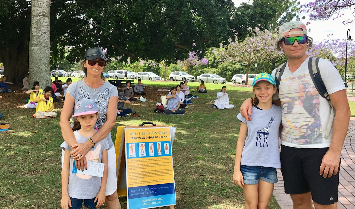 学员告诉他们,法轮功学员因为坚持信仰真善忍,遭到中共的迫害,甚至被中共活摘器官,弗南达感到非常震惊:“这么平和的功法为什么被迫害?!”杰森说他之前听说过对法轮功的迫害,也了解一些法轮功的信息,这次亲身感受到法轮功学员炼功时发出的能量,令他很受益,感觉非常好。这对年轻夫妇询问了每周炼功的具体时间,带着两个女儿一起在炼功点观看了许久才离开。