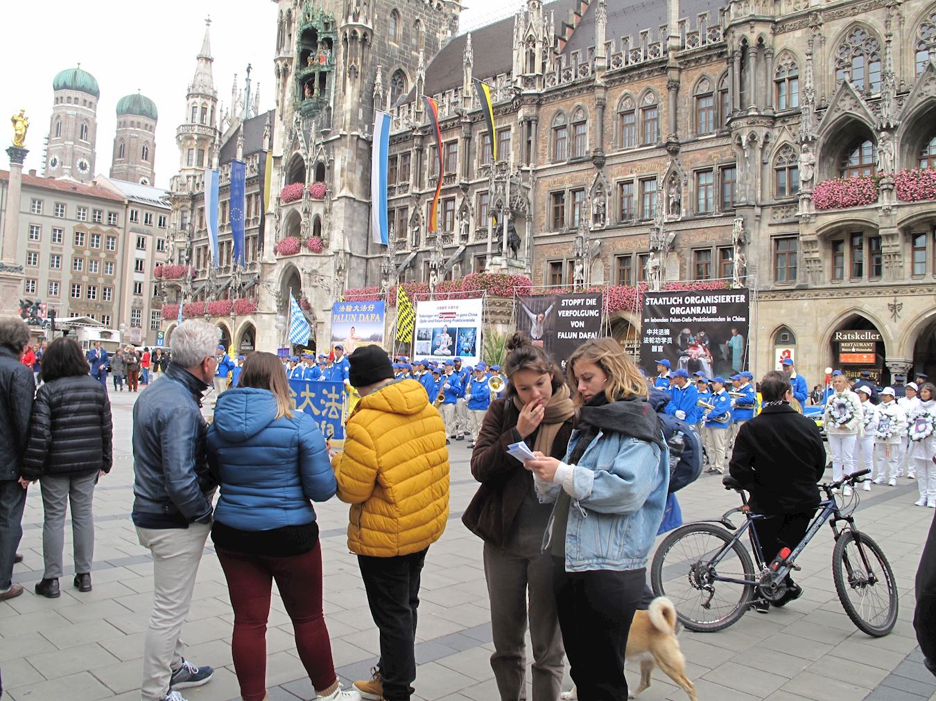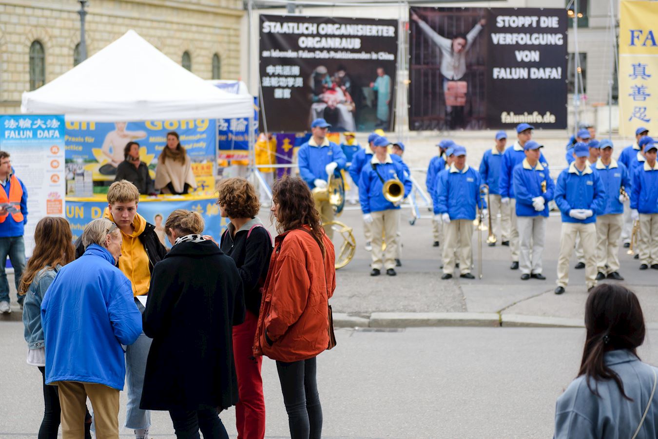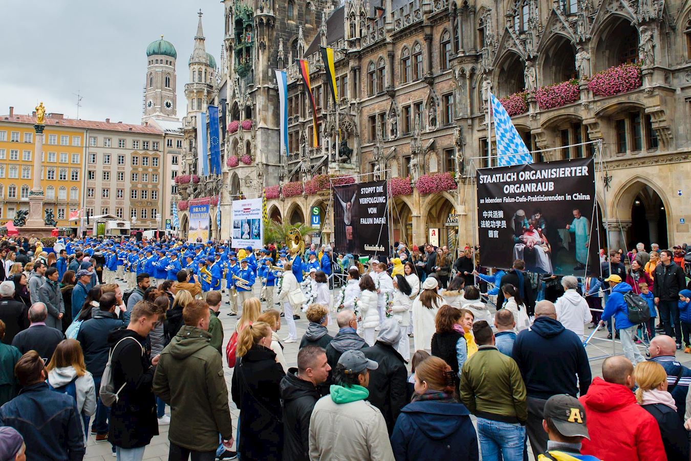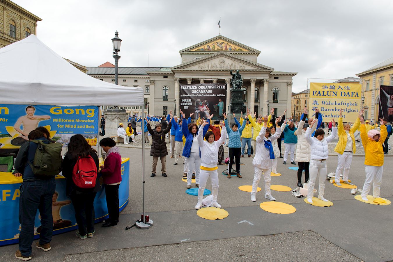 法轮功的集会和游行给人们带来和平美好,同时人们又震惊于中共对法轮功学员迫害的罪行。人们签名声援法轮功,并表示法轮功令人深思。集会在闹市区慕尼黑王宫与国家歌剧院前的马克斯-约瑟夫广场(Max-Josef Platz)和玛琳广场(Marien Platz)两地分别举办,吸引了很多人驻足观看。