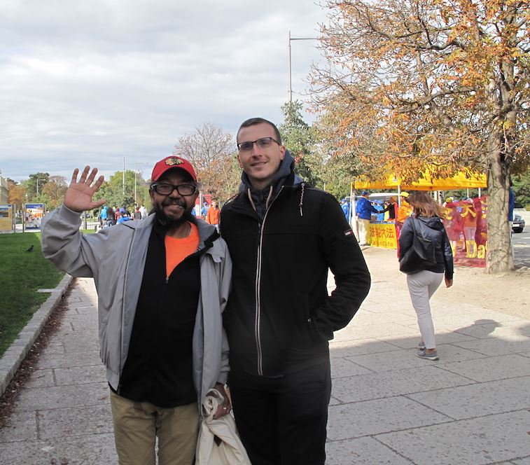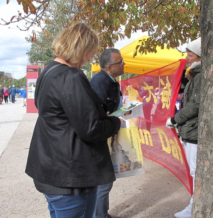 来自某中美洲国家的卡洛斯(Calros)在一位奥地利朋友的陪同下来参观美泉宫,法轮功学员当天的活动成就了他了解真相的机缘。卡洛斯一年前开始练习打坐,他知道打坐能让人放松,帮助人保持健康。刚刚了解真相的他立即表示完全认同法轮功“真善忍”理念,坚决反对中共对法轮功的迫害。他说:“当然应该保持传统,我相信他们(法轮功学员)每天早晨打坐,会得到内心的平和。”