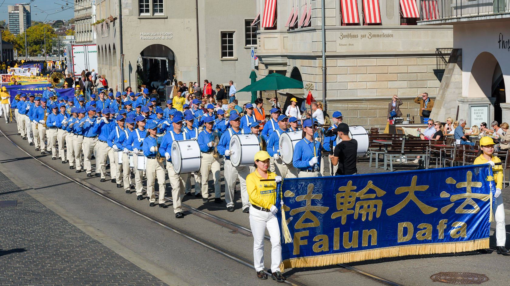 ![]() 图1~4:法轮功学员的游行队伍穿过苏黎世市中心 |