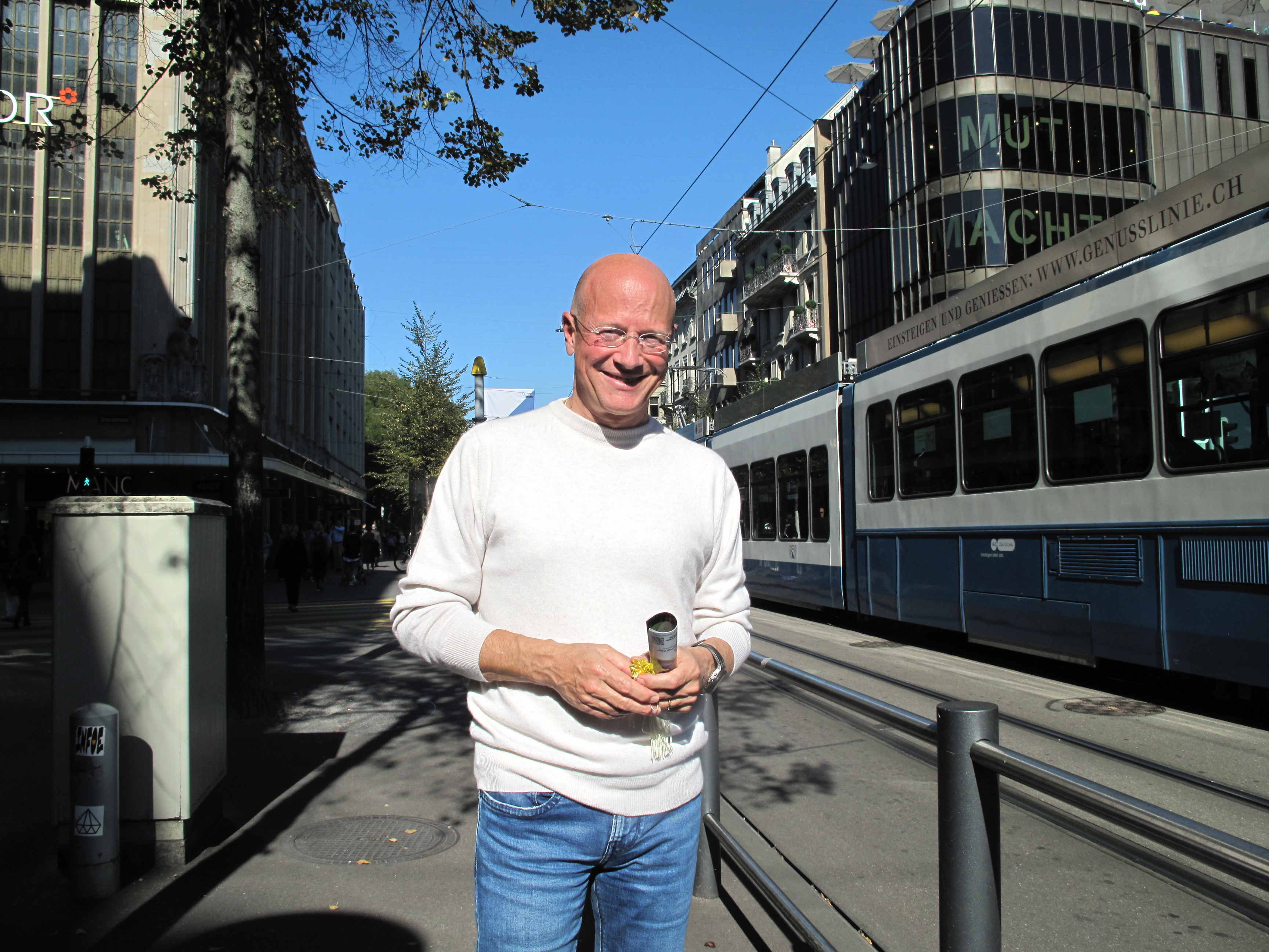 杰瑞(Jerry)和安东尼(Antony)是苏黎世金融业人士,他们的工作地点就在法轮功游行队伍经过的主要大街上,鼓声和音乐吸引二人来到路口观看法轮功游行。