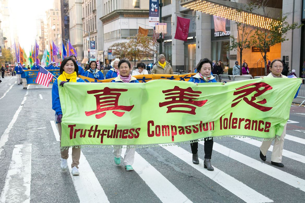 天国乐团的指挥周雯雯女士表示,法轮功的天国乐团用军乐队以音乐的形式来庆祝这个节日,同时把法轮大法“真、善、忍”的美好带给曼哈顿人民。“今天我们带来了经典曲目——‘法轮大法好’、‘凯旋’、‘神圣的歌’,另外我们还特别准备了美国国家进行曲《星条旗永不落》(The Stars and Stripes Forever),这个曲子吹起来难度较大,我们排练了很长时间,真心献给纽约老兵节,”周雯雯说:“借此向退伍军人、特别是参加过历次战争的退伍军人表达敬意,同时希望美国强大平安。”