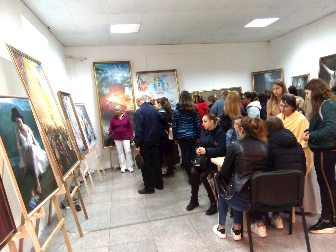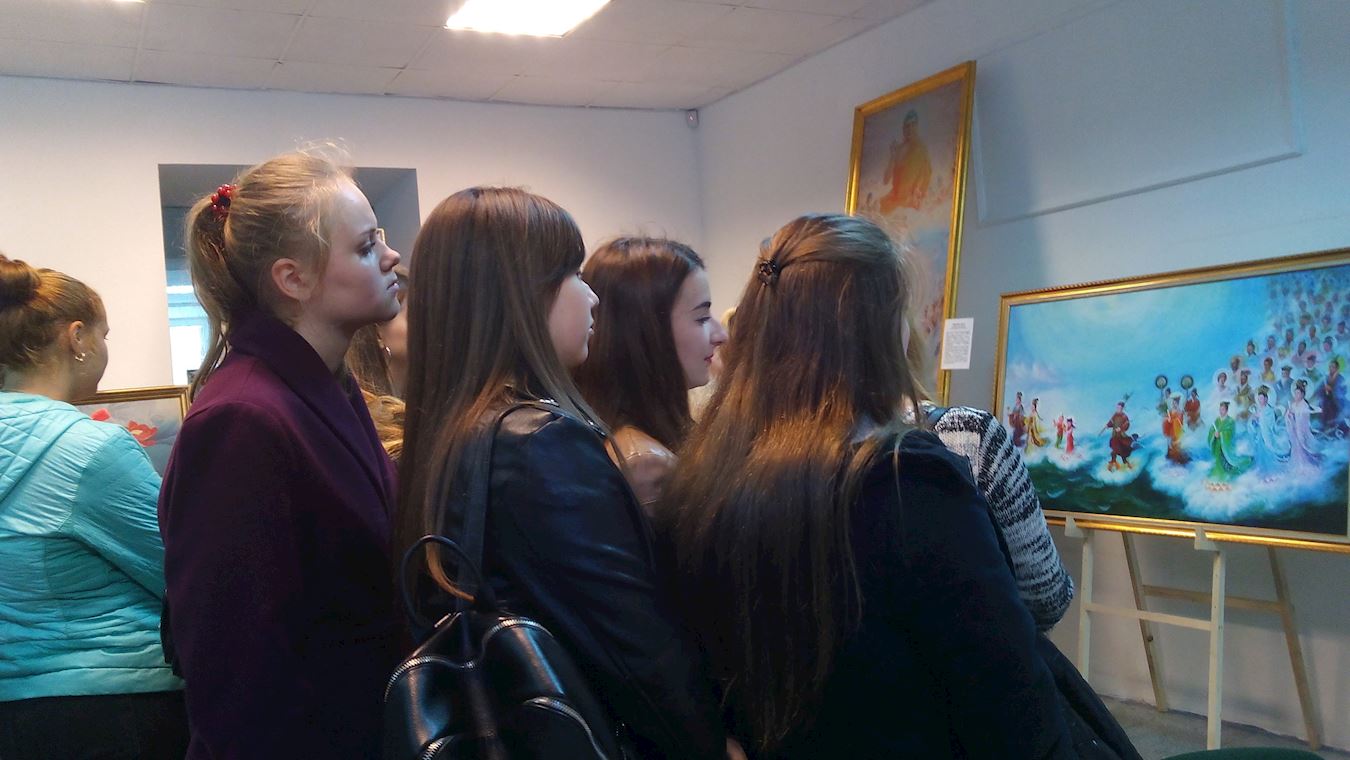 两个月以前,乌克兰学员们曾在距离战争前线四十公里以外的马里乌波尔市举办过真善忍美展。九月七日,马里乌波尔市中心台МСН报道了真善忍美展,称“画作流露的光芒以及众多神圣的元素,带给人正面的能量。”