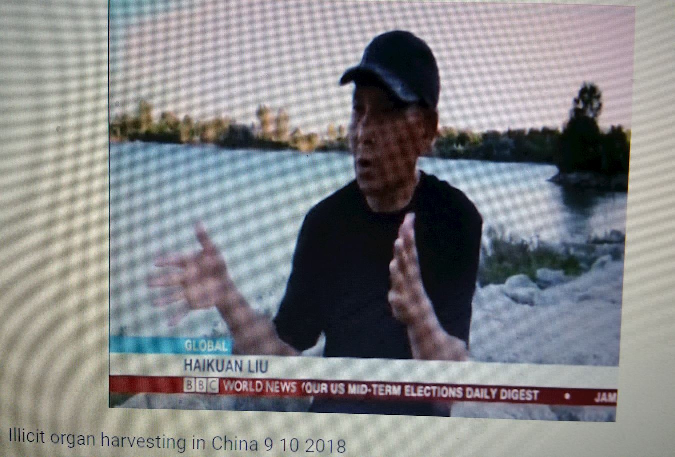 ![]() 图3:二零一八年十月八日,BBC电视台”全球(Global)”栏目播放基于马修·希尔(Matthew Hill)专门调查的节目“中国器官移植产业调查( China Transplant Investigation),主持人现场采访伊森·葛特曼(Ethan Gutmann)和安华·托蒂(Enver Tohti) |