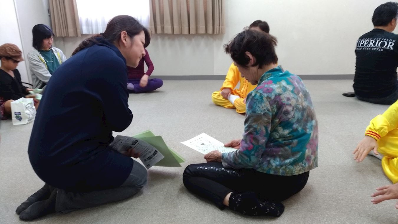 参加功法体验的民众当场阅读资料,有的要来教功点继续学功。法轮功展位的相邻团体的两位女士也表示要学功。活动过后,公民馆的担当职员主动向法轮功学员表示问候:“谢谢你们为庆典活跃了气氛,今后还请多多关照。”