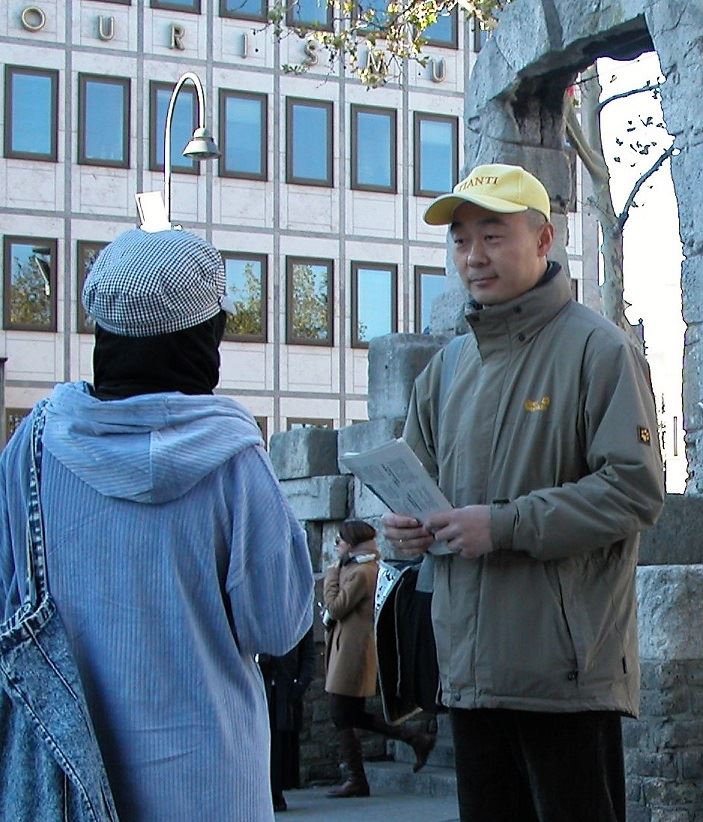 ![]() 图3~4:民众向法轮功学员了解真相 |