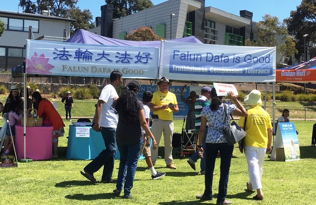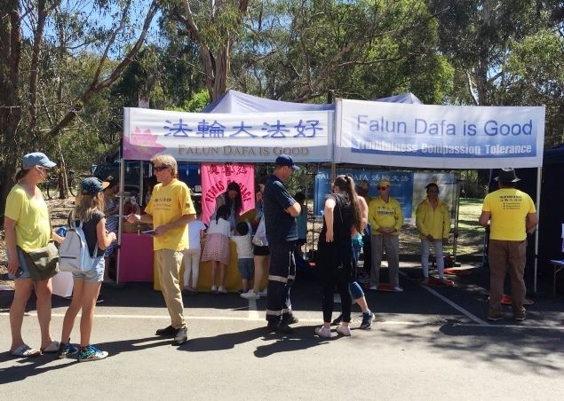 ![]() 图1:法轮功学员参加了在墨尔本城北Eltham区举行的社区节庆活动。 |