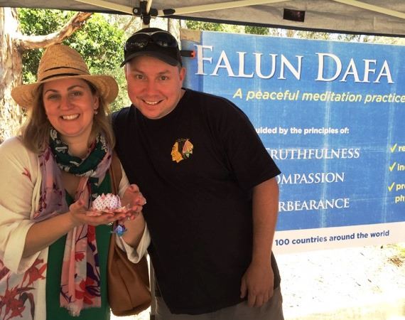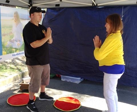 经营自己的物业维修生意的亚当·罗加什(Adam Rogasch)先生就是其中的一位。在埃尔特姆(Eltham)区举行的为期两天的大型社区节庆上,十一月十日周日这一天,罗加什在陪伴妻女的过程中,注意到法轮功学员们展示的五套功法并被深深吸引。他说:“我练武术已经十多年了,我发现法轮大法的动作和武术有些相似之处,比如身体的动作包含打坐提升内在精神境界的部份。”在请一位西人学员教他学炼了第一套功法“佛展千手法”之后,罗加什说:“我能非常明显(very strongly)的感受到能量通透全身。”他还表示,非常想学会法轮功的所有功法。