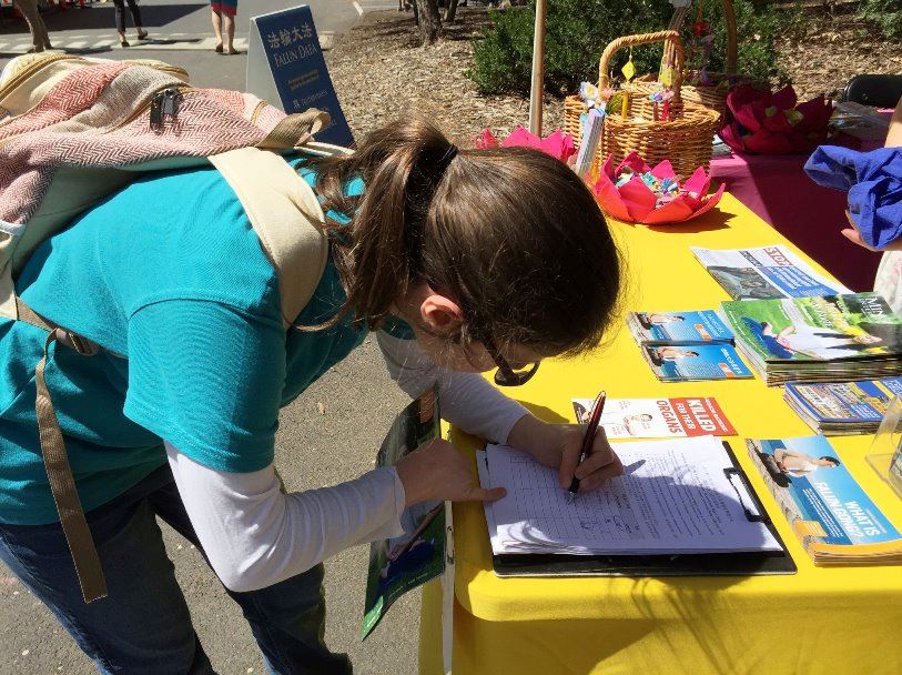 当了解到中共对法轮功学员的残酷迫害,第一次听闻法轮功真相的阿克兰表示这一消息很令人不安,于是她在制止迫害的签名表上写下了自己的名字。