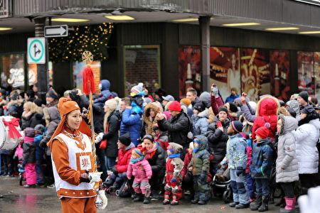 这项活动始于一九二五年,是寒冬里魁北克家庭最为期待的圣诞活动,当天有逾十万民众到现场观看。法轮大法天国乐团,连续多年受邀参加蒙特利尔圣诞游行,今年天国乐团队伍有一百五十人,跟往年一样,是游行中声势最浩大的队伍。
