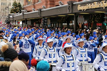 '图2~5:由150人组成的法轮大法天国乐团是圣诞游行中阵容最大的队伍。'